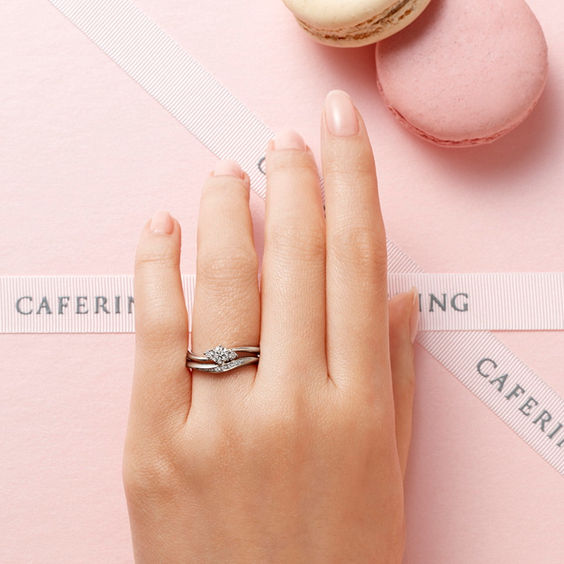 ひとつの愛(ダイヤモンド)をふたりで包み込む意味を持ち、美しいウェーブラインは、ふたりの愛が流れる時を表しています。