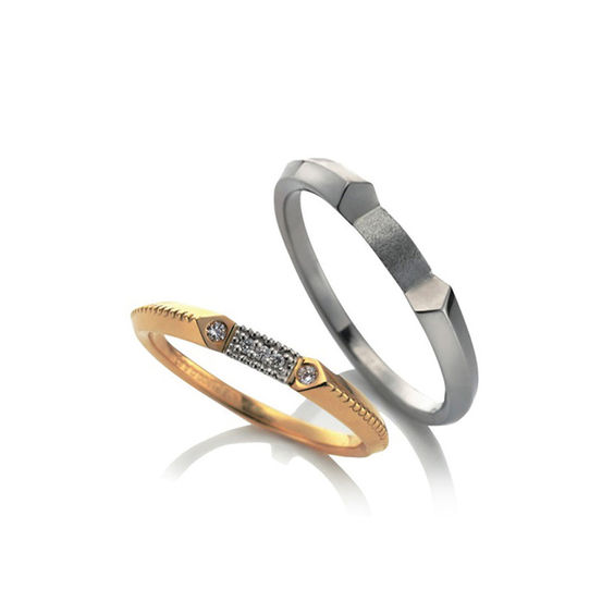 エッジのついた細身で繊細なリングは、立体的なフォルムが個性的。レディースにはミル打ちが入り少しアンティークに、デザインはモダンに。細部にまで拘った、CARATI VOCEならではのマリッジリングです。