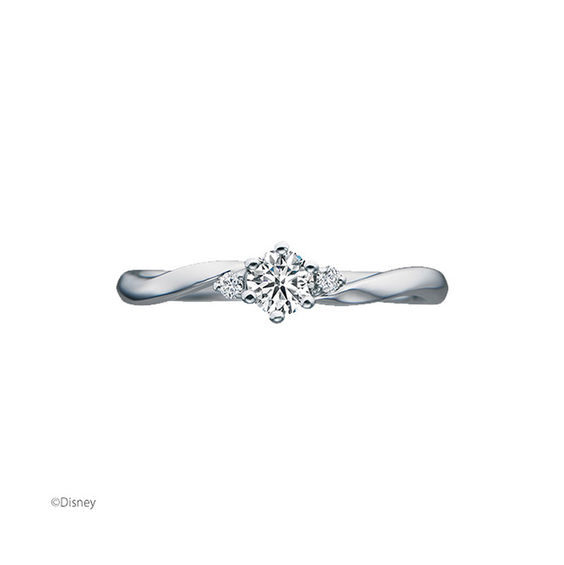 エンゲージリングの台座は水の泡を感じる丸型。石座裏にはアリエルのイメージカラーグリーンのペリドット。