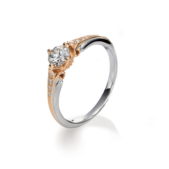 上から見るとシンプルな一粒ダイヤのエンゲージリングも、横から見ると全く別の表情を見せてくれるこだわりのデザイン。立体的で特に360°どの角度から見ても美しく計算されたデザインは「オールアングルデザイン」としても有名です。
