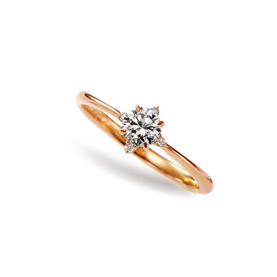 上から見るとシンプルな一粒ダイヤのエンゲージリングも、横から見ると全く別の表情を見せてくれるこだわりのデザイン。立体的で特に360°どの角度から見ても美しく計算されたデザインは「オールアングルデザイン」としても有名です。