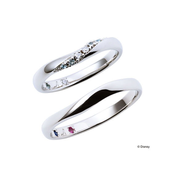 レディースはシンデレラをイメー ジし、ダイヤモンドとブルートパーズをグラデーションになるようセット。