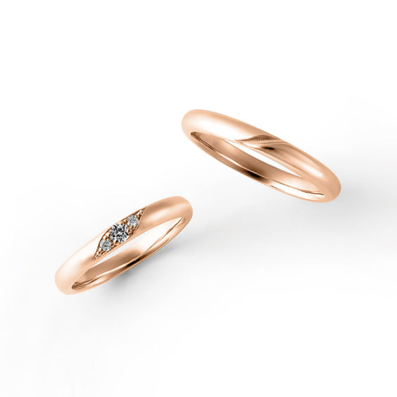 ペアのリングにはマットな質感のラインを施し、シンプルさの中にアクセントを添えています。