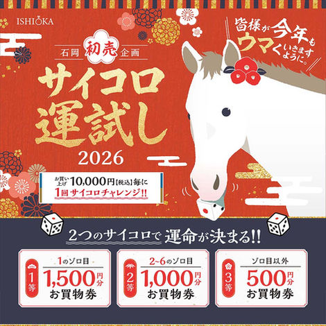 お買い上げ10,000円(税込)毎に1回サイコロチャレンジ!!