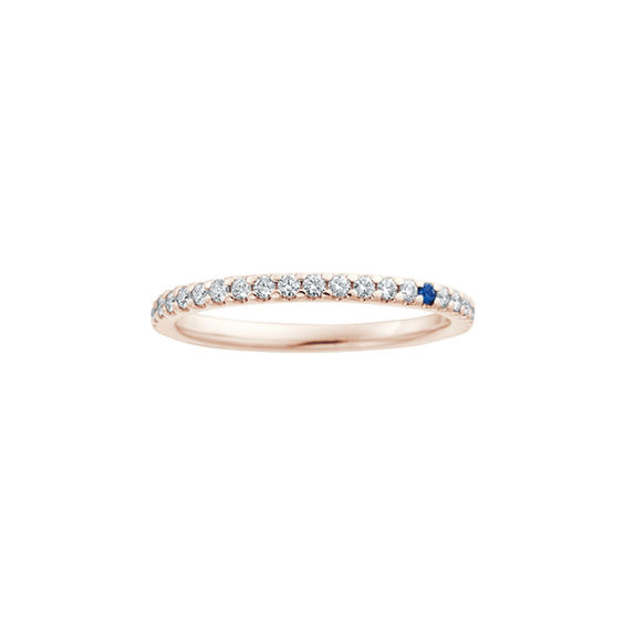 すべてのリングの内側に、結婚式のおまじない“サムシングフォー”のひとつ「Something Blue」にちなんだブルーサファイアを留めています。 ブルーサファイアには慈愛・成功・誠実といった石言葉があり、ずっと変わらない幸せを願う意味が。