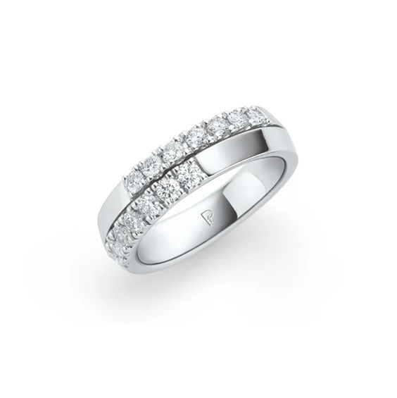 ダイヤが上下についており、指を綺麗に見せてくれるデザインになっております。