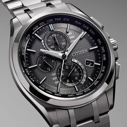 シチズンの技術の粋をつぎ込んだアテッサ。わずかな光でも動き続ける「光発電エコ・ドライブ」や、日本、中国、アメリカ、ヨーロッパの世界4エリアの電波送信所から送信される標準電波の受信に対応している「電波時計(ワールドタイム)」など、過酷な環境に耐えうるハイスペックな機能を搭載。