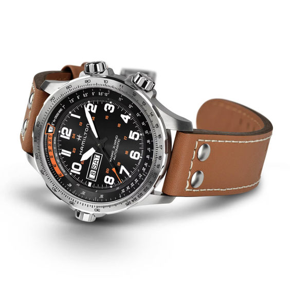 伝統的なアビエーションスタイルと本格機能を継承するカーキ X-ウィンド デイデイト。9時位置に配されたデイデイト表示、スーパールミノバ®加工のインデックス、視認性の高い針が、モダンでスポーティな存在感を放つアビエーションウォッチ。
